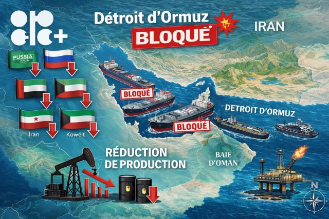 Le détroit d’Ormuz, artère vitale du commerce pétrolier mondial, est quasiment paralysé depuis plusieurs jours. Conséquence directe des tensions militaires au Moyen-Orient, cinq grands producteurs membres de l’OPEP+ ont été contraints de tailler dans leur output de brut. L’Arabie saoudite, les Émirats arabes unis, le Bahreïn, l’Irak et le Koweït figurent parmi les pays les plus touchés, avec des baisses qui pèsent déjà sur les approvisionnements internationaux.